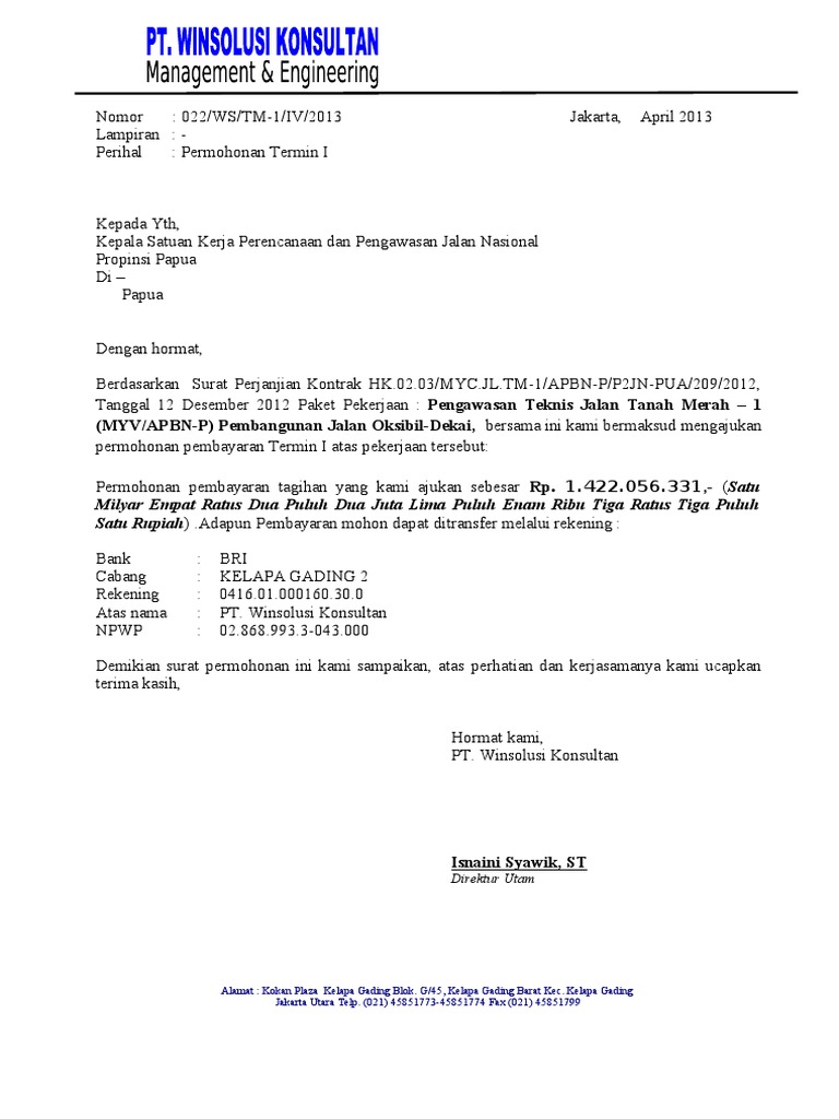 Contoh Surat Pemberitahuan Pembayaran Invoice Delinewstv